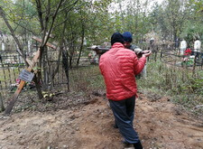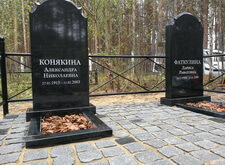 После создания основания мы покрыли территорию места захоронения гранитной брусчаткой, параллельно с этим установив заранее изготовленные памятники и цветники. Затем вернули на место металлическое ограждение и засыпали цветники и площадь перед брусчаткой корой. Этап работ на снимках не отображён, однако на приведённых ниже фото отлично виден итоговый результат.