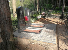 На данном участке клиент пожелал вместо уже существующего оформления места захоронения изготовить два симметричных памятника и покрыть территорию рядом с ними брусчаткой.
