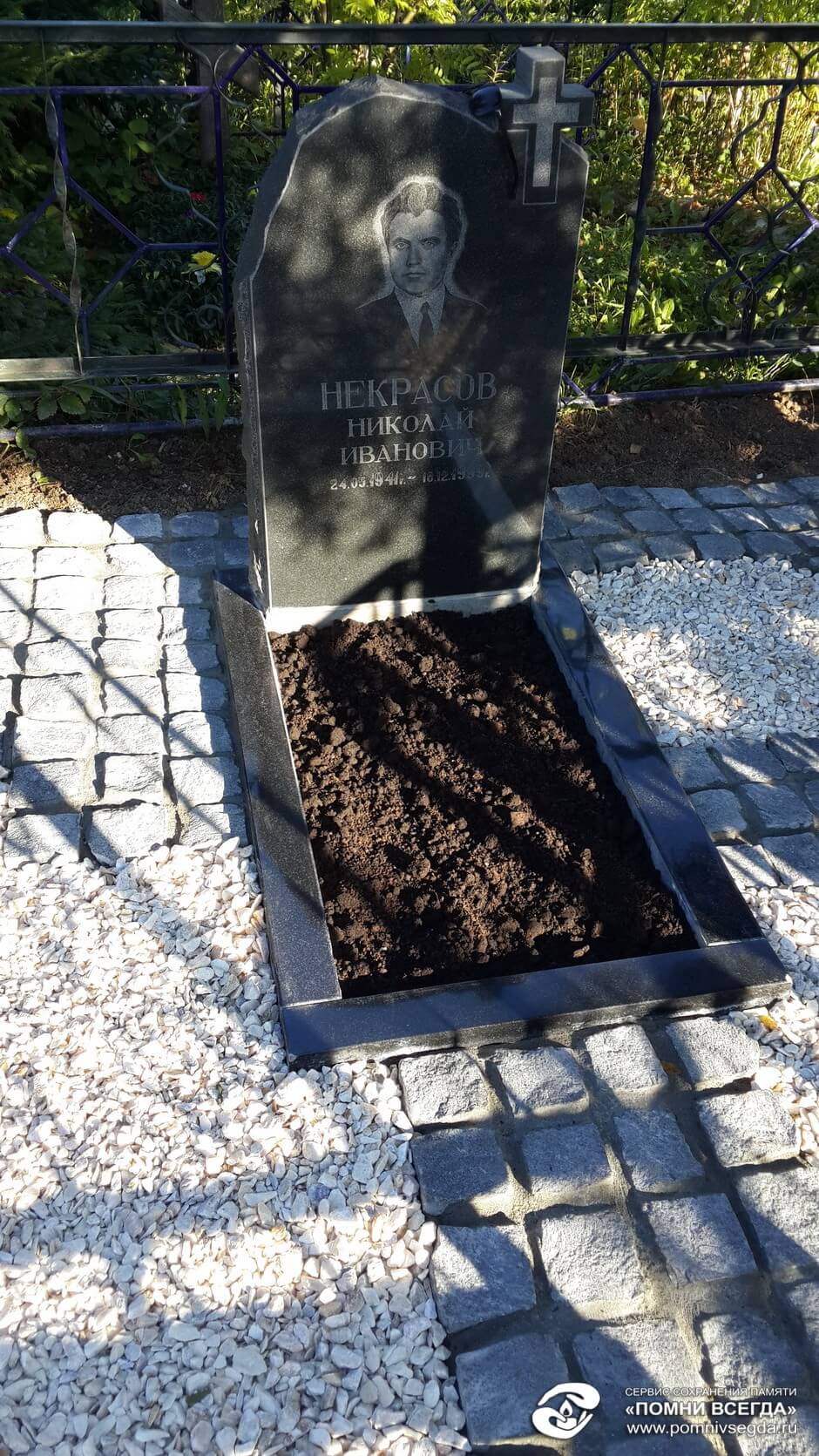 Практически все, что требуется для удовлетворительного внешнего вида – это обустроить пол. Так и в этом заказе. Мы сделали пол, частично из брусчатки, частично из мраморной крошки. Установили металлическую лавочку. Поправили покосившуюся плиту и установили цветник.