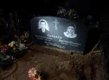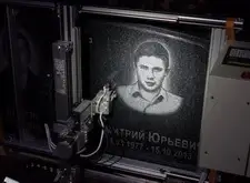 Гравировка портрета и надписи на установленном памятнике на Щербинском кладбище