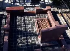 Вернули на место гранитный цоколь, дополнив его установленной на оградке лавочкой, заполнили цветник корой. По периметру места захоронения тоже положили наземное покрытие. Под всей брусчаткой на участке находятся полотна геотекстиля, благодаря которым решается проблема с прорастающей травой.