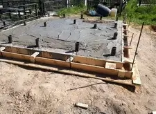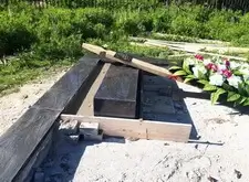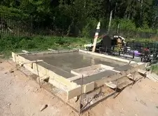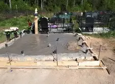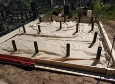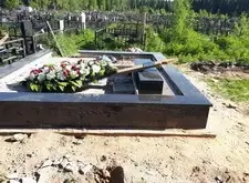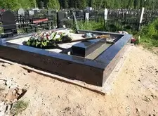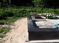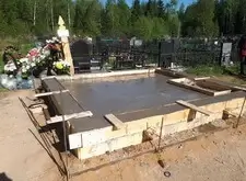 В одном из углов участка специально оставлена прямоугольная ниша. По периметру места захоронения залили опалубку, немного возвышающуюся над основанием.