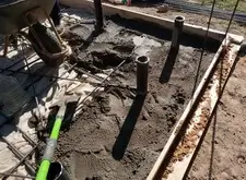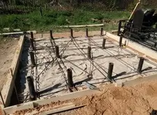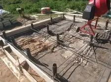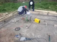 Далее началась постепенная заливка бетоном, в процессе который была вварена ещё одна арматурная сетка.