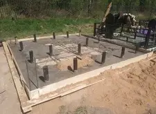 Зачищаем поверхность основания, на которой будет установлено надгробье, врезаем опорные арматурные штыри.