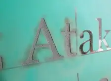 Переходим к надписи. Текс будет размещён на лицевой стороне надгробья, под гравировкой сидящего человека. Метод гравировки ничем не отличается от текста в ранее изготовленной книге: пескоструим и грунтуем надпись, после чего покрываем клеем, на который накладываем сусальное серебро. Буквы зачищаем и избавляем от лишних образований. Получившийся результат сверху покрываем лаком.