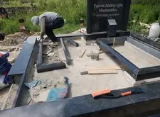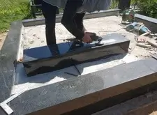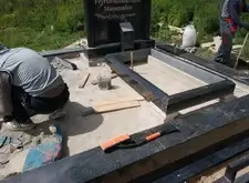 Снова возвращаемся к могиле. Устанавливаем подставку, на которой будет размещён памятник, цементируем.