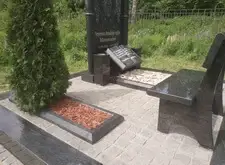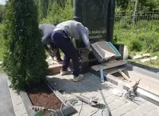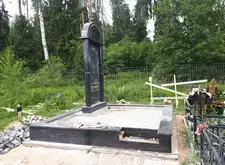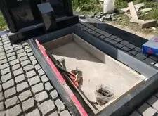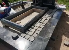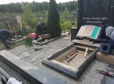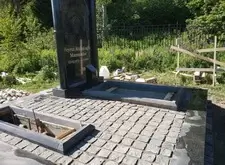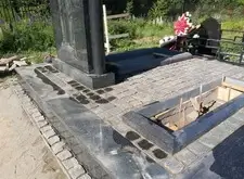 Так выглядит место захоронения после укладки установки памятника и укладки брусчатки
