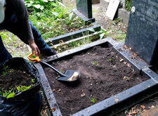 Тщательно утрамбовываем землю в цветниках, придавая могилам ухоженный вид.