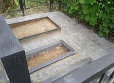 Пример того как только создание гранитного пола из брусчатки преображает общий вид места захоронения. Больше не будет сорняков и травы там, где ее быть не должно. Есть покрытие на котором очень приятно стоять и которое очень хорошо подчеркивает границы участка.